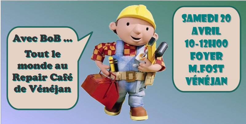 Venez nombreux et de bonne heure si vous avez des objets à réparer. Bricoleurs, venez nous aider.