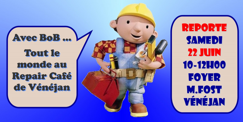 Venez nombreux et de bonne heure si vous avez des objets à réparer. Bricoleurs, venez nous aider.